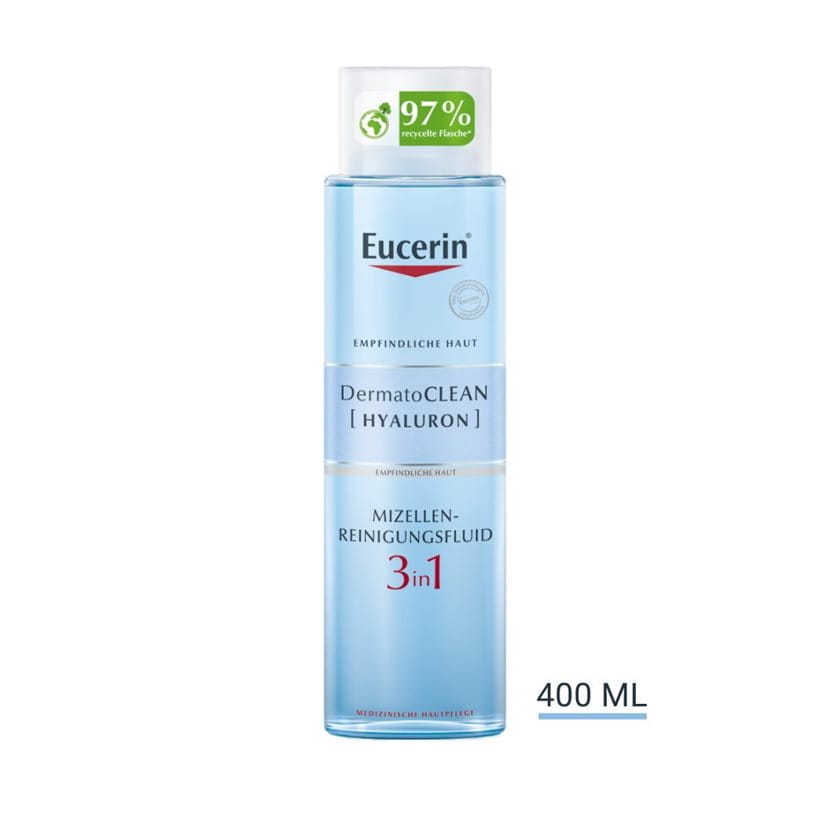 Eucerin DermatoClean [Hyaluron] Mizellen Reinigungsfluid 3 in 1 ist eine schnelle und unkomplizierte Gesichtsreinigung, die für alle Hauttypen, auch für empfindliche Haut, geeignet ist – dies ist klinisch und dermatologisch erwiesen.