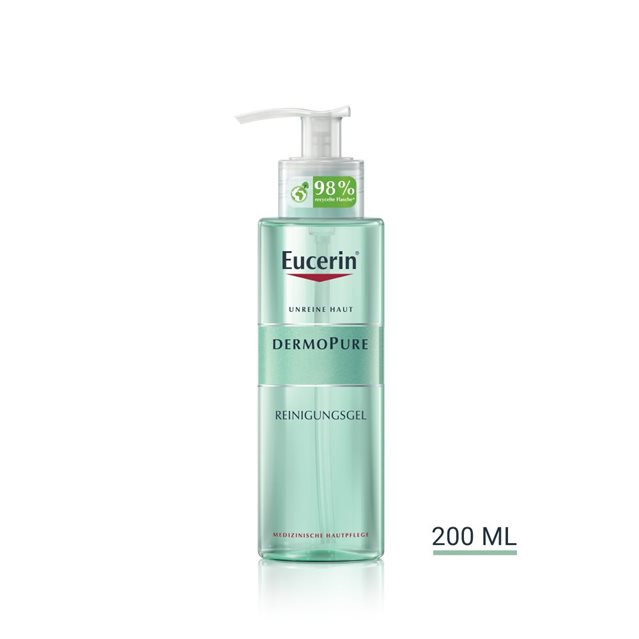 Das DermoPure Reinigungsgel befreit die Haut effektiv und gleichzeitig sanft von überschüssigem Talg. Schmutzpartikel und Make-up werden durch die seifenfreie Formel mit 6 % Ampho-Tensiden entfernt. Die Haut fühlt sich rein, klar und geschmeidig an und das Hautbild ist bereits nach wenigen Anwendungen sichtbar verbessert.