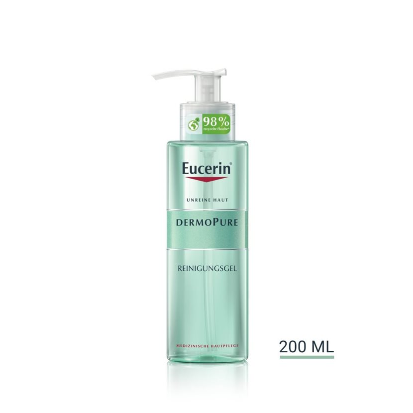Das seifen- und parfümfreie DermoPure Reinigungsgel eignet sich zur täglichen Reinigung. Das Gel ist sanft zur Haut, während es nithilfe der 6 % Ampho-Tensiden Schmutz, Make-up und überschüssigen Talg (Talgfluss) wirkungsvoll entfernt. Dank seiner antibakteriellen Eigenschaften beseitigt das Gel Bakterien und hemmt das Bakterienwachstum. Es ist nicht komedogen und verstopft daher nicht die Poren. Es kann auch während einer Schwangerschaft oder begleitend während einer medizinischen Aknetherapie problemlos verwendet werden.