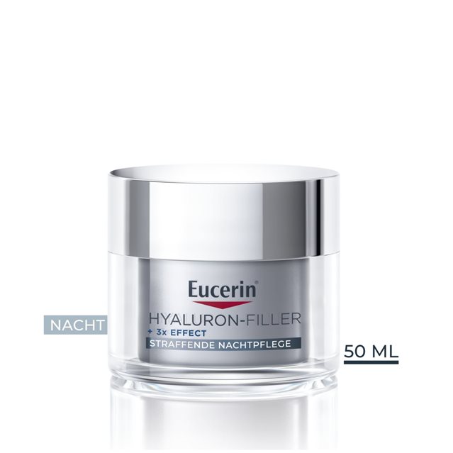 Die Eucerin Hyaluron-Filler + 3x Effect Straffende Nachtpflege wurde entwickelt, um dem Alterungsprozess der Haut entgegenzuwirken. Die Anti-Age-Nachtcreme mildert selbst ausgeprägte Falten, strafft sichtbar die Haut und regeneriert die Haut über Nacht – für eine jünger und straffer aussehende Haut.