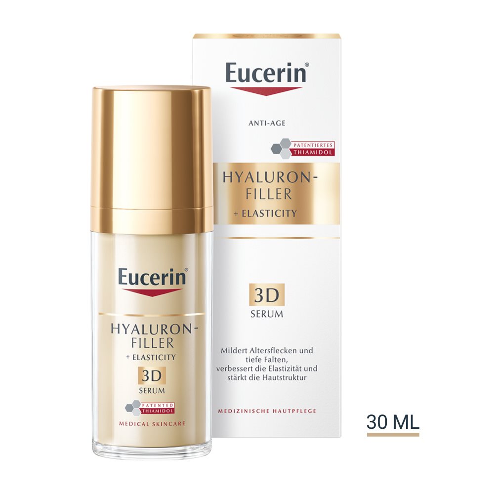 Das Eucerin Hyaluron-Filler + Elasticity 3D Serum enthält zwar sowohl lang- als auch kurzkettige Hyaluronsäure, die die Hautfeuchtigkeit verbessern. Jedoch wurde es nicht dafür entwickelt, eine Feuchtigkeitscreme zu ersetzen, sondern um diese zu ergänzen. Um optimale Ergebnisse zu erzielen, empfehlen wir die Verwendung kombiniert mit anderen Produkten der Eucerin Hyaluron-Filler + Elasticity Serie.