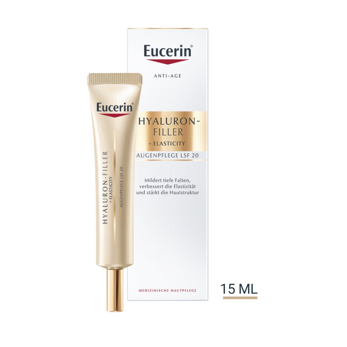 Die Produkte aus der Eucerin Hyaluron-Filler + Elasticity Serie empfehlen wir für anspruchsvolle Haut, bei der sich bereits teils tiefe Falten gebildet haben. - unabhängig vom Alter. Hier kann auch die Eucerin Hyaluron-Filler + Elasticity Augenpflege unterstützen, Falten in der Augenpartie optisch zu mildern.