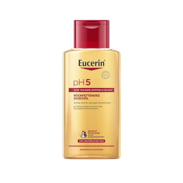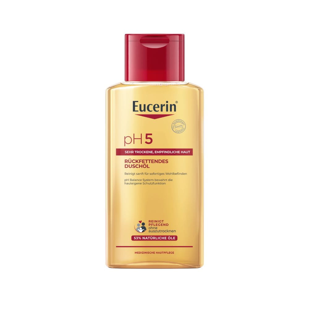 Spannungsgefühl, Rötungen und Juckreiz können die Reaktion von sensibler Haut auf Umweltreize sein. Daher braucht die angegriffene Haut eine besonders milde Reinigung, die die physiologische Balance der Haut aufrechterhält. Das rückfettende Duschöl wurde speziell für die pflegende Reinigung strapazierter Haut entwickelt. Die Formel mit dem natürlichen pH-Wert und Dexpanthenol (Provitamin B5) bewahrt nachweislich die natürliche Schutzfunktion und Widerstandskraft der Haut und reinigt sanft mit einem hohen Anteil natürlicher Pflegeöle. Das pH Balance System und extra milde Tenside sorgen dafür, dass während des Waschens das saure Hautoberflächenmilieu nicht verändert wird. So bleiben die günstigen Umgebungsbedingungen für ein intaktes Hautmikrobiom erhalten. Das Duschöl ist dezent parfümiert und auch für Kinder ab drei Jahren geeignet.