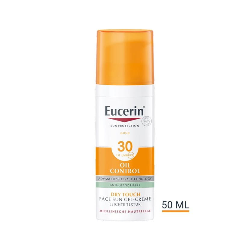 Eucerin Oil Control Face Sun Gel-Creme LSF 30 ist unparfümiert mit einer leichten, nicht fettenden Textur, klinisch und dermatologisch getestet und sehr gut verträglich für unreine, zu Akne neigende Haut und auch empfindliche Haut.