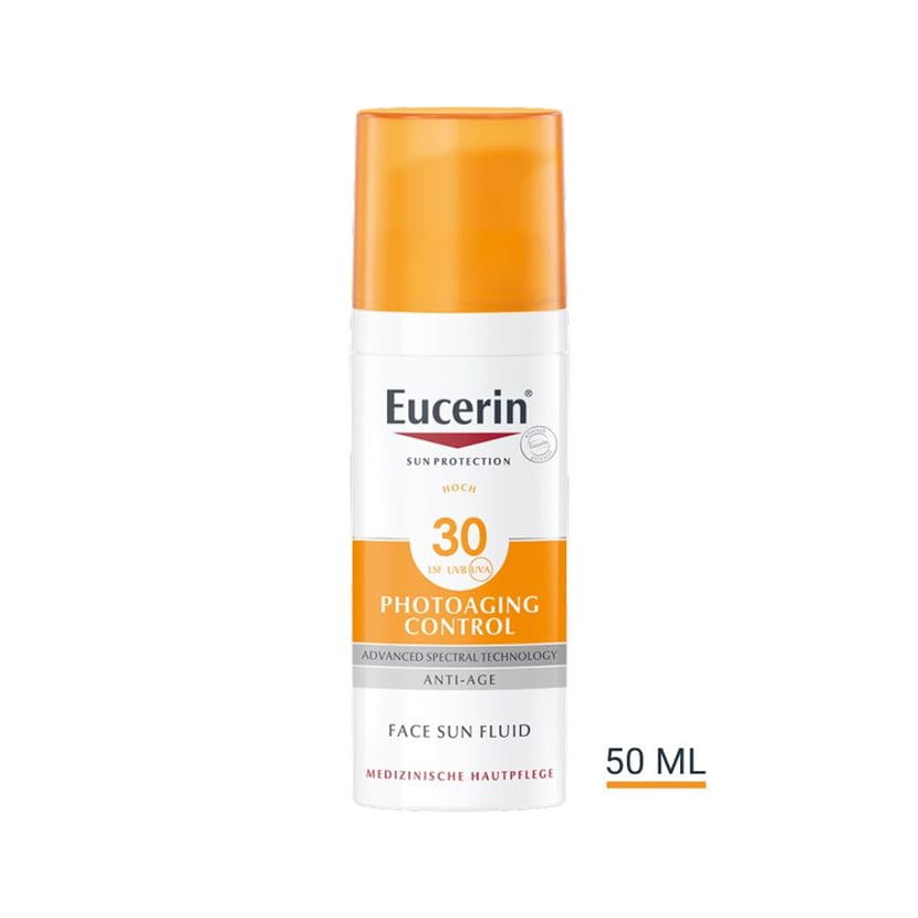 Eucerin Photoaging Control Face Sun Fluid LSF 30 ist unparfümiert mit einer leichten Textur, die schnell einzieht.