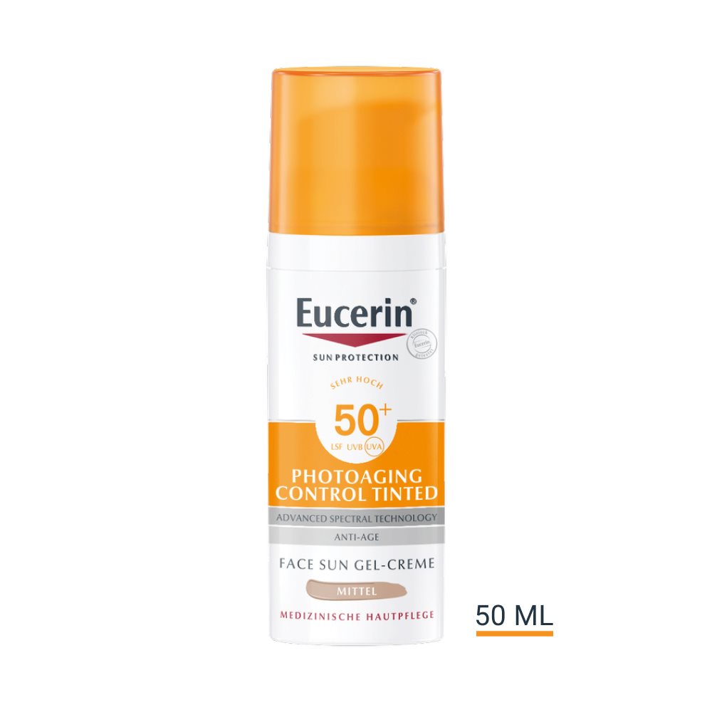 Eucerin Photoaging Control Tinted Face Sun Gel-Creme LSF50+ Mittel ist unparfümiert und schweißresistent mit einer leichten Textur, die langanhaltend deckt und schnell einzieht. Geeignet für die Anwendung 4 Tage nach einer Laser- oder Peelingbehandlung.