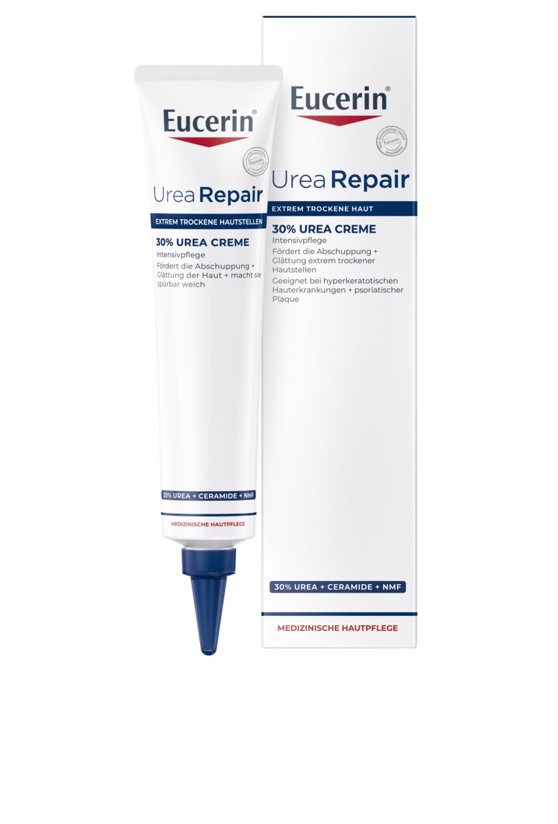 Wir empfehlen die Eucerin UreaRepair 30% Urea Creme ein- bis zweimal täglich aufzutragen.